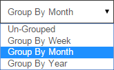 Once you have selected your date range, it will be displayed in the middle, grouped by month as default. To display the clinics as Un-Grouped, By Week or By Year, select from the drop-down menu in the centre of the screen: