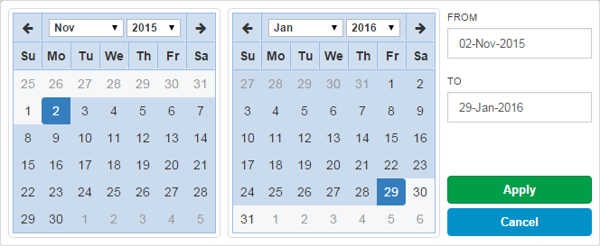 Select your start and end dates from the calendars, or enter into the FROM and TO boxes: