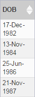 The DOB column will display the Date of Birth of the patient booked into the Clinic: