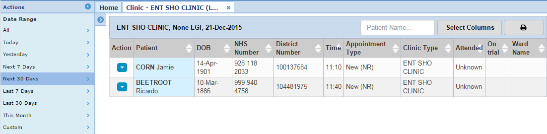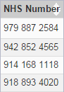 The NHS Number column will display the NHS Number of the patient booked into the Clinic:
