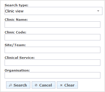 To search for a Clinic in PPM+, make sure Clinic is selected from the drop-down search box then enter in a keyword such as a Doctor's name or a Speciality: