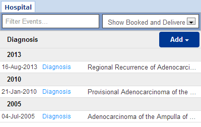The related diagnoses are displayed at the bottom and can be viewed by clicking on the date or anywhere in that row.