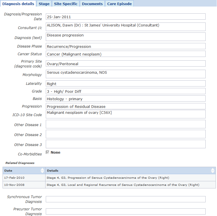 Select a Diagnosis from the list of Problems/Issues/Diagnoses and the details will appear on the right: