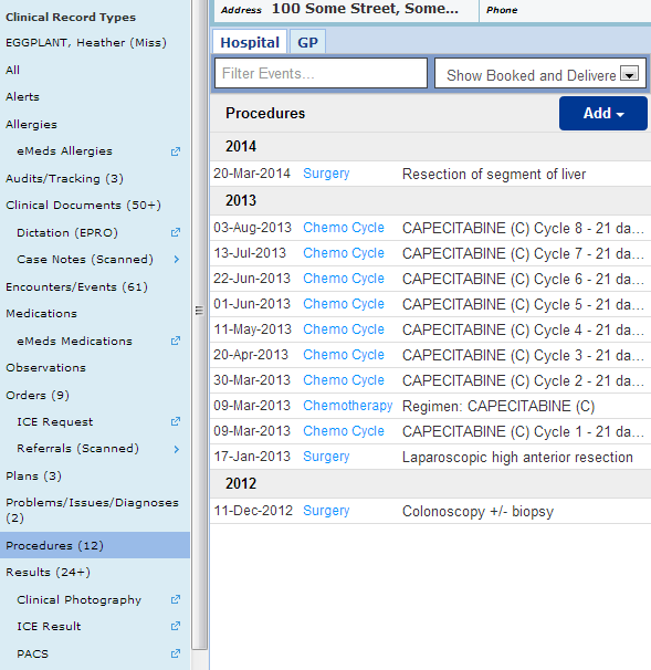 To view all the procedures, click on Procedures under Clinical Record Types: