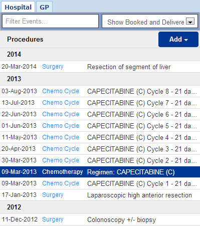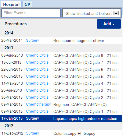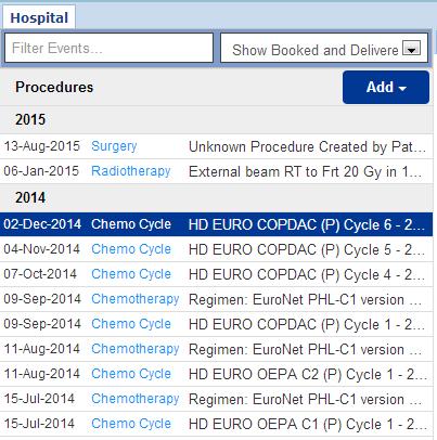 Select a Chemo Cycle from the list of Procedures to view the details: