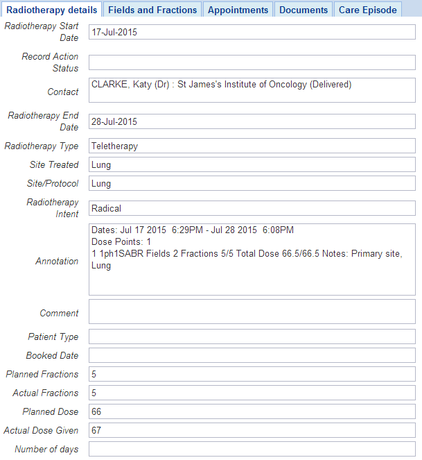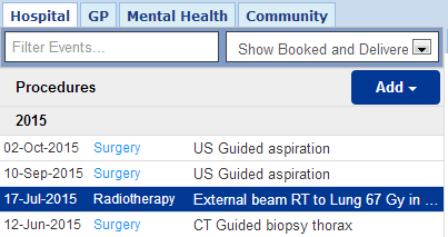 Select a Radiotherapy from the list of Procedures and the details will appear on the right: