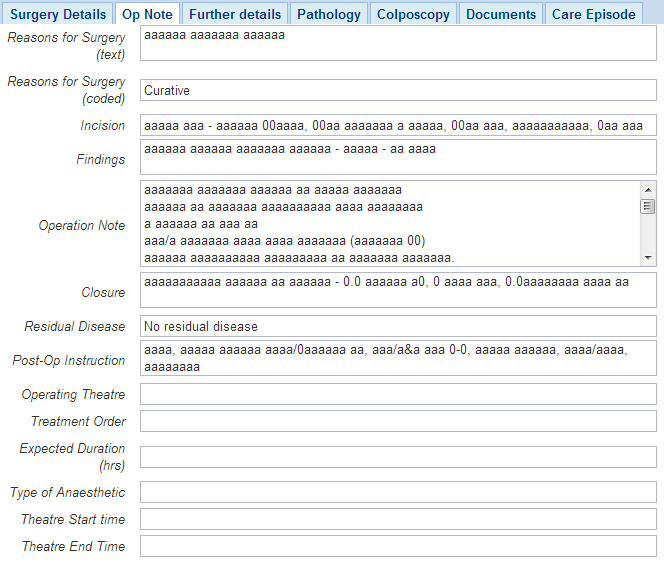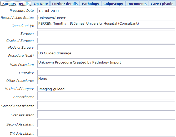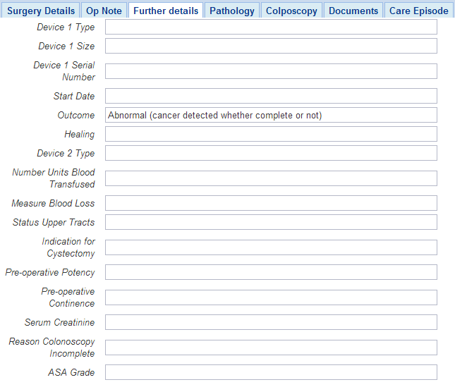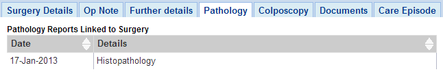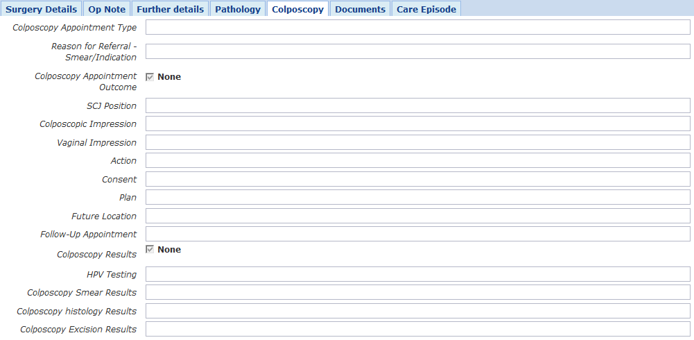 The next tab will list any Colposcopy appointments linked to that Surgery: