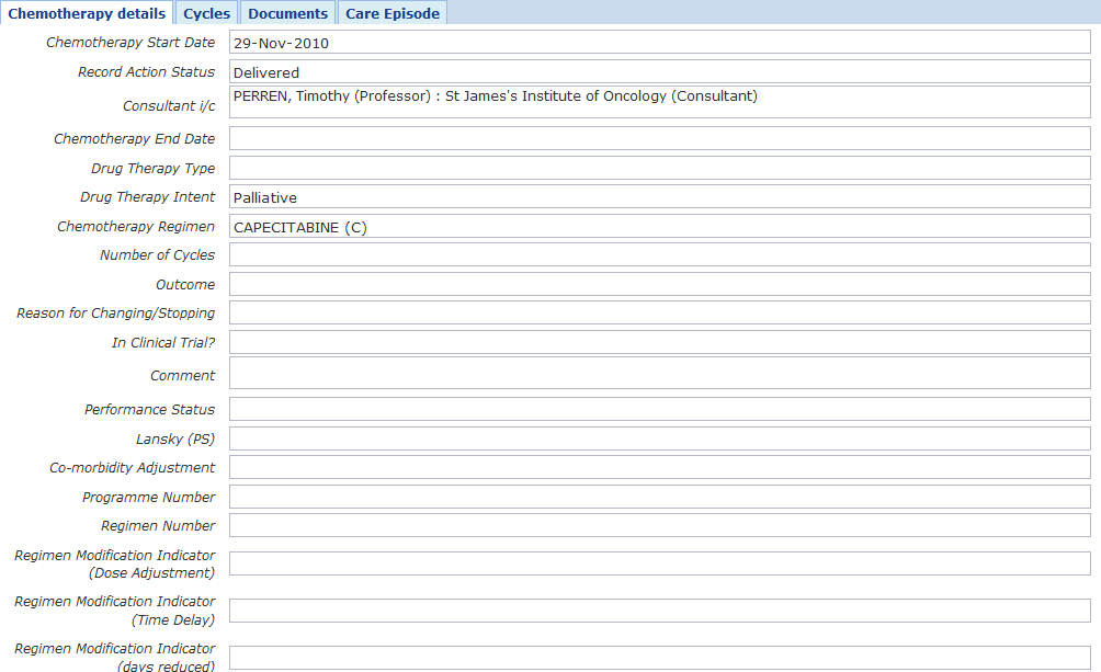 Select a Chemotherapy from the list of Procedures and the details will appear on the right: