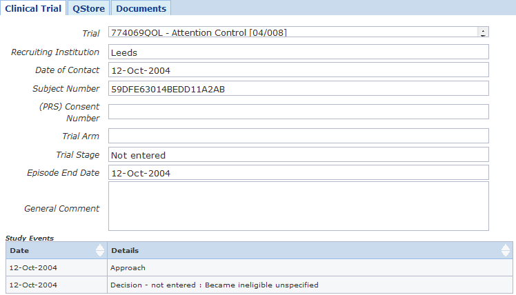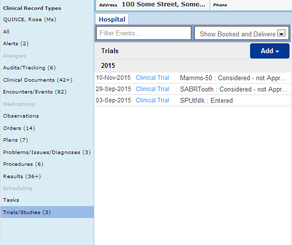 Select a Clinical Trial from the list of Trials/Studies and the details will appear on the right:
